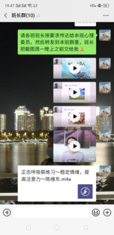 我校心理中心组织心理健康教育专兼职教师,为学生录制了心理健康调适和评估方法的一系列音频和小视频,通过心理委员发送本班级微信群、QQ群。具体辅导内容:一是讲座情绪宣泄方法视频(上中下)。二是神经症评估方法视频。三是心理状态快速转换方法视频。四是音频正念放松练习音频。力求满足我校学生心理疏导的需求,进一步扩大心理健康教育工作的影响力和受益面。