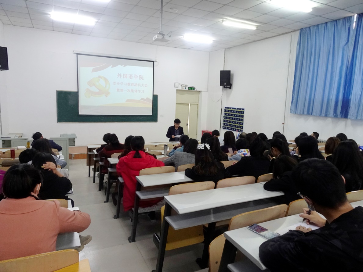 4月21日下午,学院在院楼阶梯教室召开党史学习教育动员大会,深入学习贯彻习近平总书记在党史学习教育动员大会上的讲话精神,认真落实中央和上级部署要求,对学院开展党史学习教育进行动员部署。学院党总支书记邱晓东主持会议,全体党员参加会议。