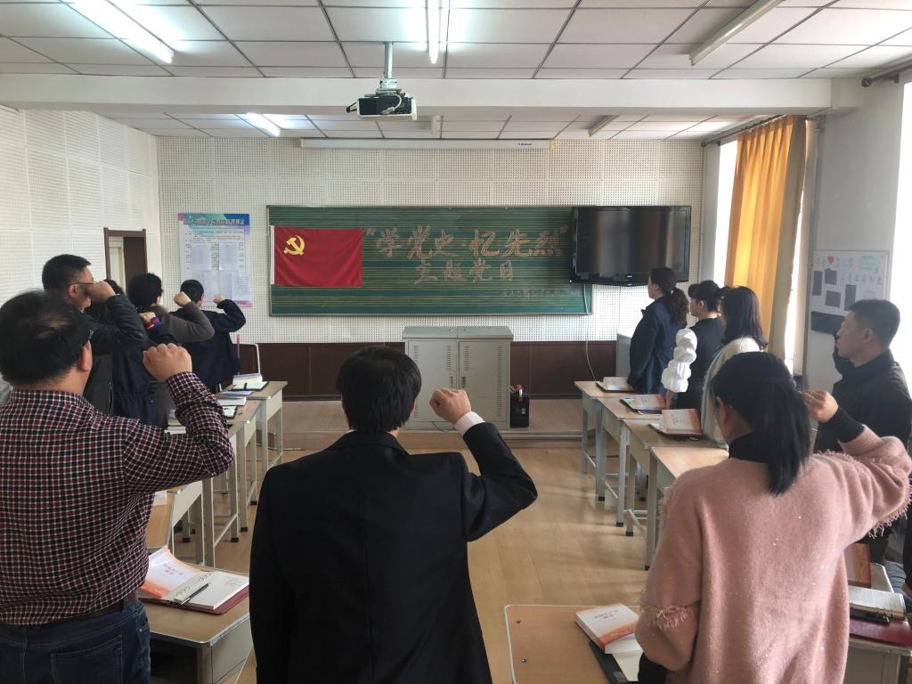 2021年4月21日下午1:30分,音乐与舞蹈学院教工党支部在学院140教室,开展了“学党史·忆先烈”主题党日活动,活动由教工党支部书记孙洪波主持。活动开始,全体党员面向党旗重温入党誓词。