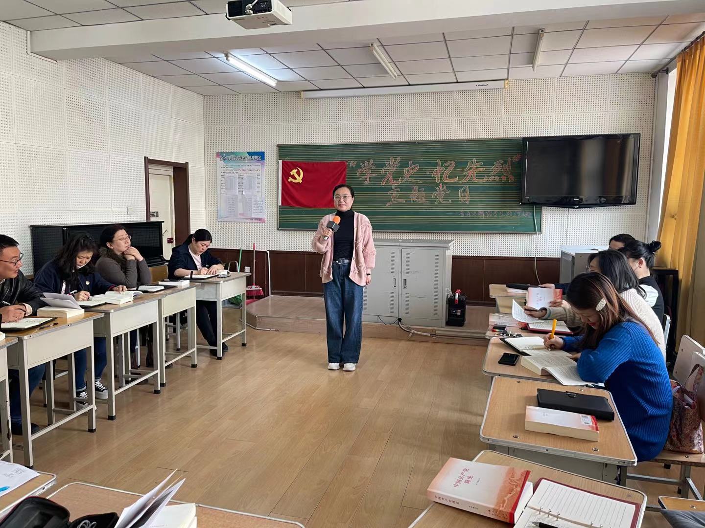重温入党誓词结束后,教工党支部全体党员集中学习了《中国共产党简史》中的部分篇目,支部书记孙洪波领学了第一章的第三部分“中国共产党的成立和民主革命纲领的制定”;院长助理李轶男领学了第二章的第六部分“党的七大和确立毛泽东思想为党的指导思想、抗日战争的最后胜利”;院长助理任广明领学了第四章的第六部分“党的七届二中全会和筹建新中国”;院长孙永波领学了第五章的第一部分“中华人民共和国的成立和新生人民政权的巩固”。