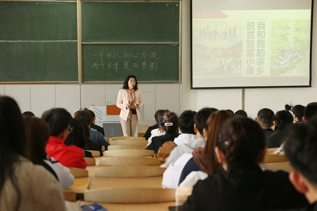 此次讲座邀请大庆市委宣讲团成员、马克思主义学院党总支书记赵桂英为全体学员授课。思政课教师、党组织书记、辅导员、大学生党员骨干代表、学生工作处全体共计100多人参加专题讲座。讲座由学生工作处副处长楚丽丽主持。