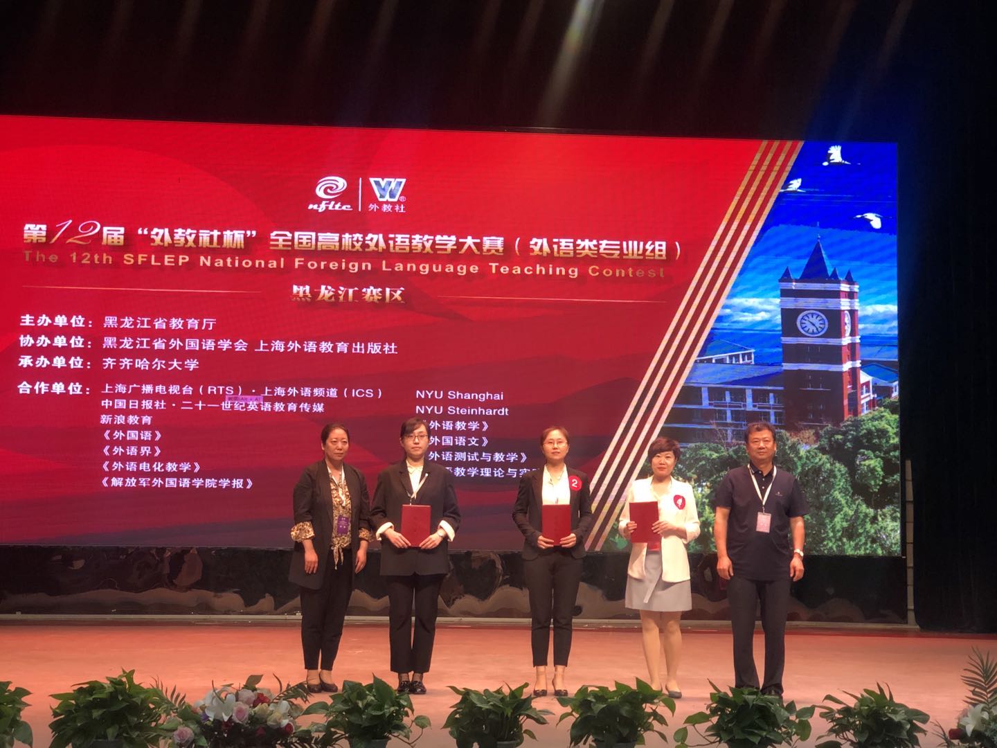 2021年6月20日上午,由黑龙江省教育厅主办,黑龙江省外国语学会、上海外语教育出版社协办,齐齐哈尔大学承办的第十二届“外教社杯”全国高校外语教学大赛(英语类专业组)黑龙江赛区决赛暨颁奖典礼在齐齐哈尔大学顺利举办。