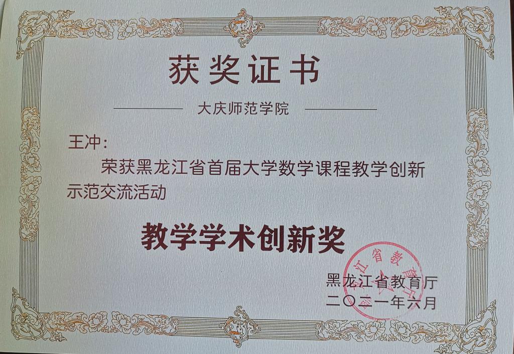 6月12日-13日在哈尔滨工程大学进行了省赛。7月19日在“2021年大学生数学竞赛及教学创新理论研讨会”上进行了颁奖仪式。沙元霞副教授获得“黑龙江省首届大学数学课程教学创新示范交流活动——教学设计创新奖”,王冲副教授获得“黑龙江省首届大学数学课程教学创新示范交流活动——教学学术创新奖”。