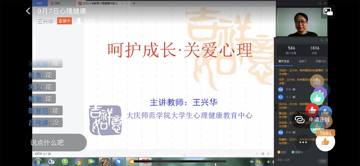 同学们都纷纷表示新生入学每个讲座都很好,受益匪浅,老师们的讲授深深地打动了他们,直播点赞数达到近百万次。