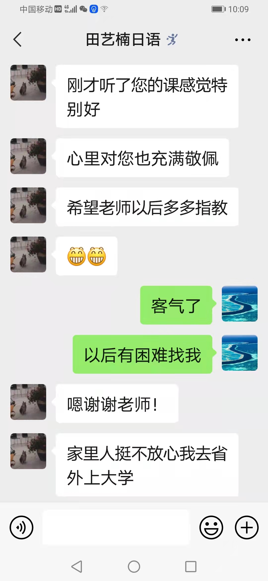 机电工程学院物理二班杨骥奔同学说:“楚老师,您好!非常敬佩您的幽默随和,您的讲话风格非常有魅力,优雅大方,旁征博引,让学生受益匪浅!”