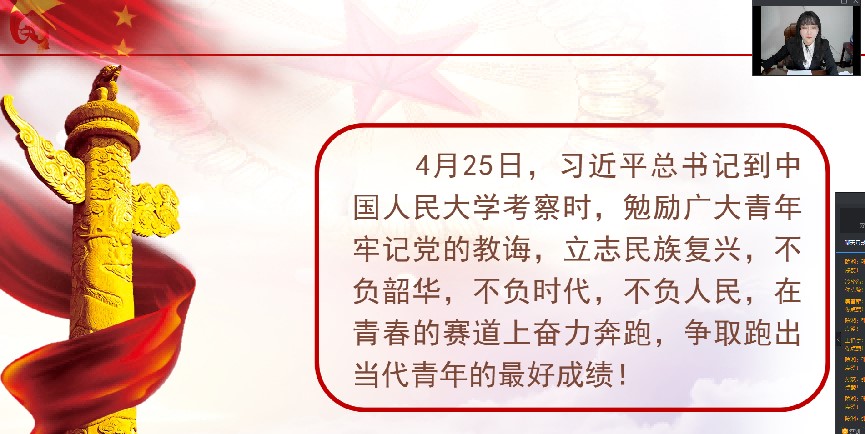 为深入学习贯彻落实习近平总书记在人民大学重要讲话精神,坚定广大青年的奋斗目标和前行方向,引导学生党员坚定不移听党话、跟党走,努力成长为堪当民族复兴重任的时代新人。5月4日晚,学校组织部、团委联合组织开展“强党性固信念保纯洁促先进”党员教育讲座,校团委宣传部副部长张芮荧以《学好百年团史凝聚奋进力量》为题做专题讲座,全体学生党员在线聆听讲座。