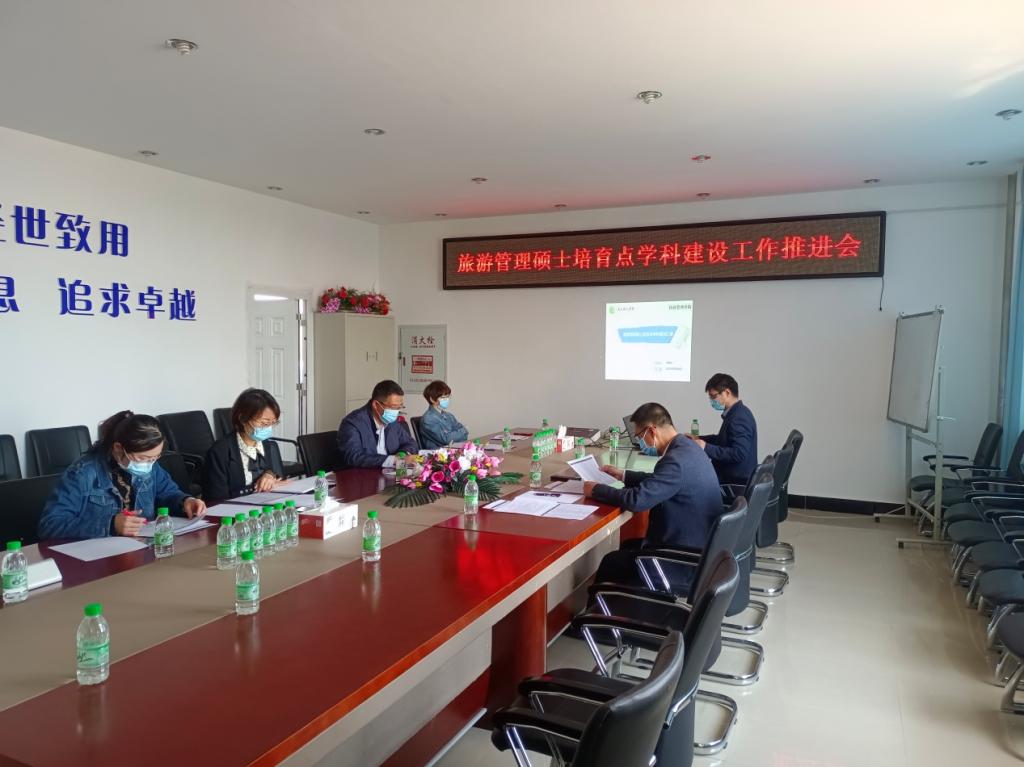 2022年5月16日上午,经济管理学院召开旅游管理硕士培育点学科建设工作推进会。会议由经济管理学院行政负责人刘楠主持,学科带头人张平副校长,学术(后备)带头人孙伟仁博士、李媛媛博士、张凤岩副教授,旅游管理系车鑫主任及部分教师参加。