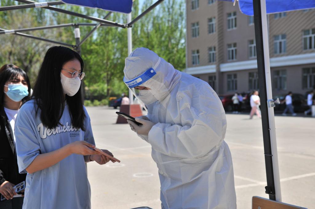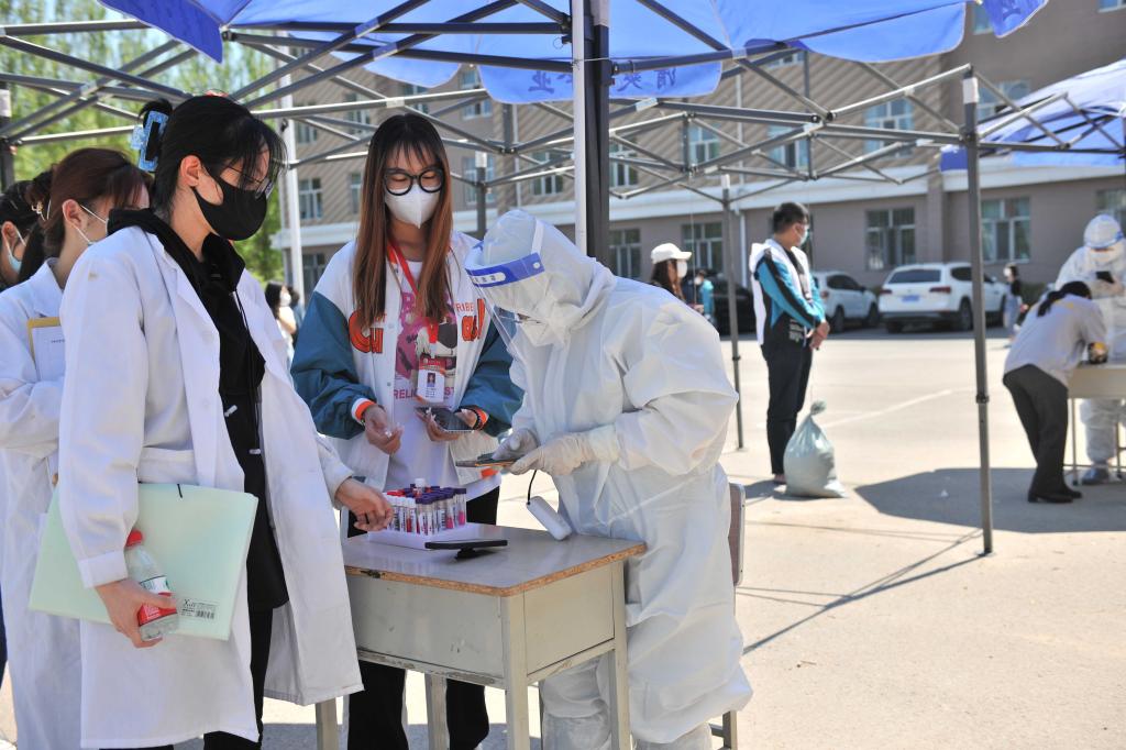 5月18日中午,志愿者们提前20分钟来到学校大学生活动中心,提前穿好防护服,准备好工作物品,分成四个小组,有条不紊地为每一名前来进行核酸检测的师生员工扫码登记,累计完成2000余人。他们以实际行动为学校疫情防控做出贡献,汗水虽湿透了衣背,但是他们伫立坚守的英姿却定格在了庆师校园,和学校所有志愿者一起筑成了全校上下众志成城的疫情防控战斗堡垒。