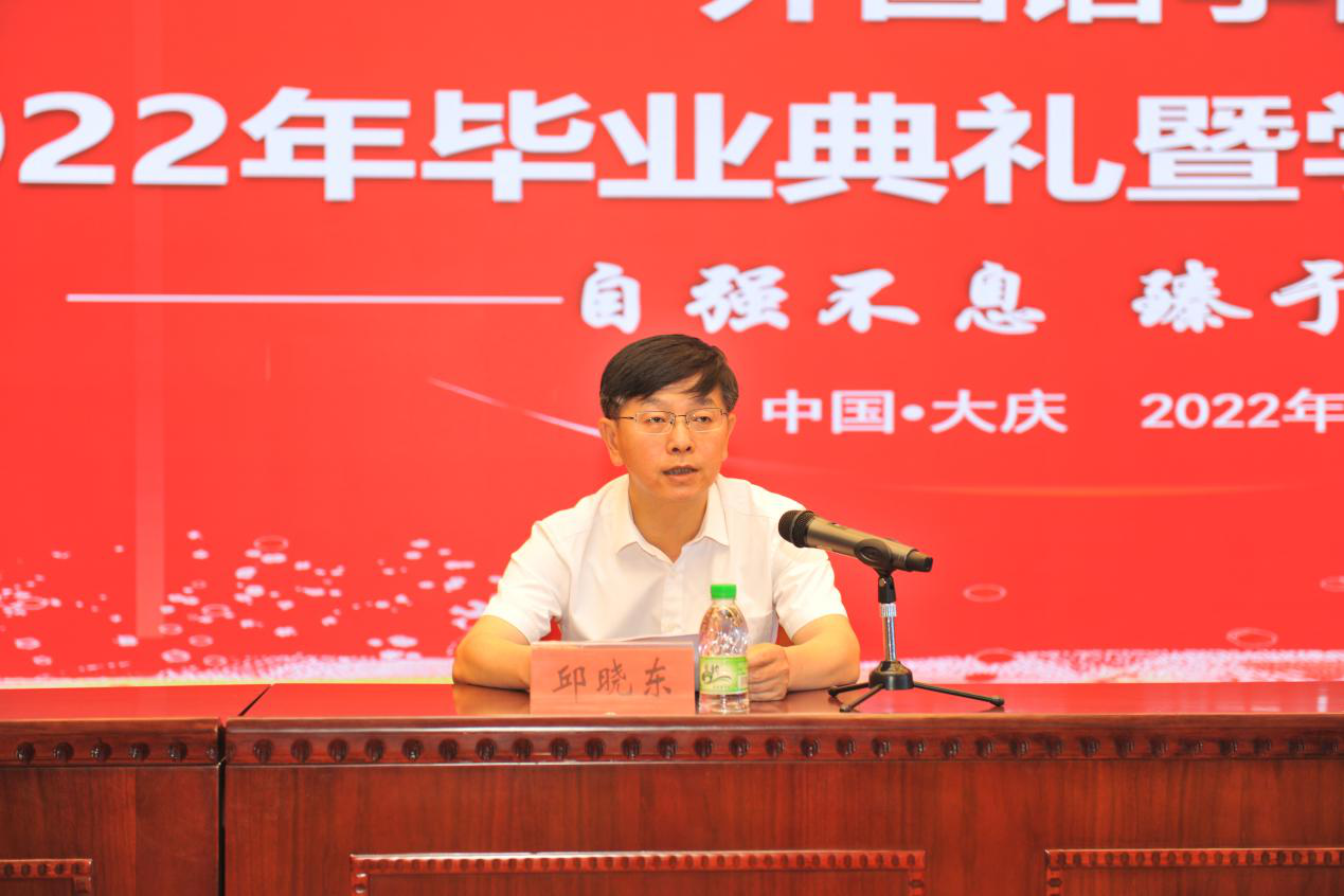 毕业典礼由学院党总支书记邱晓东主持,仪式在庄严的国歌声中拉开帷幕,全体人员起立齐唱《义勇军进行曲》。
