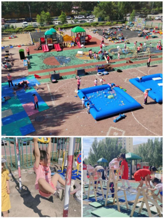 在此次观摩活动中,试点园所在学习安吉游戏经验基础上,积极赋予儿童游戏自主权,并为儿童创设自主的游戏环境。试点园所儿童在戏水、戏沙、攀爬等游戏活动中,充分展现了冒险、投入、喜悦等游戏精神。