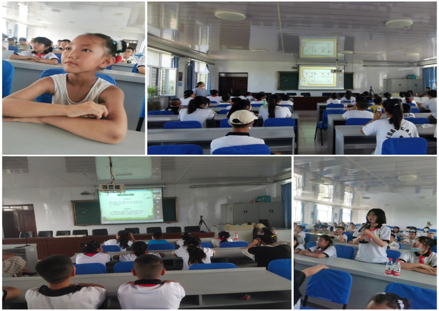 英语趣味课堂中,队员们用通俗易懂的英文知识、好听的英语儿歌和有趣的原声电影让同学们沉浸在知识的海洋中,同学们声声朗读和踊跃回答让队员们热情高涨,现场氛围活跃热烈。红色知识宣讲时,队员们分别讲述了杨靖宇将军和董存瑞等多名革命先烈的光辉事迹以及所蕴含的红色革命精神。暑期安全教育课堂里,队员们对于暑期安全注意事项进行了详细讲解,带领同学们学习了“三个禁止、三个严防、三个远离”等安全知识,为大家介绍了多种自救方法,与此同时,对于儿童诱拐防范等诸多案例也进行了细致阐述和剖析。