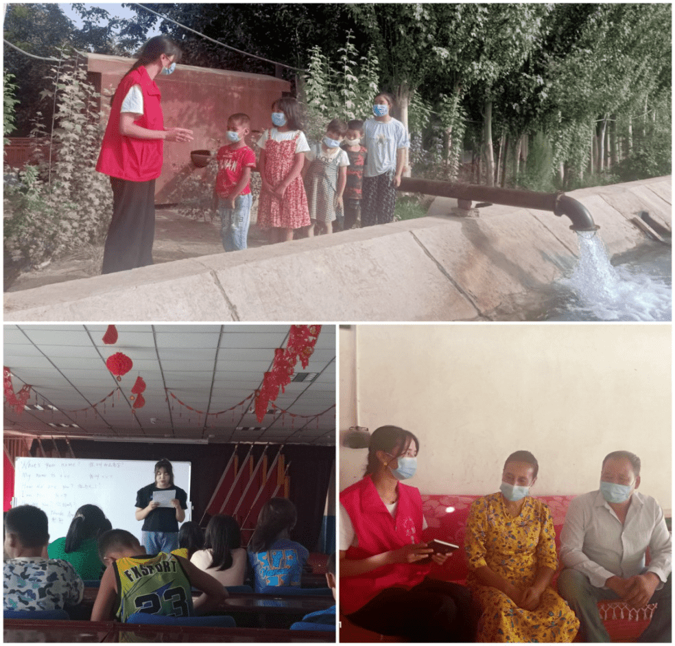 今年的晨曦“三下乡”活动主题为“云”守望“暖”童心,实践地点为杜尔伯特蒙古族自治县克尔台乡蒙古族学校。梦之翼“返家乡”活动主题为“喜迎二十大,永远跟党走——同心共筑中国梦”,主要实践地点为新疆喀什市帕哈太克里乡中心小学以及周边乡村。由于疫情防控等诸多方面的原因,实践活动为线上线下相结合进行。在开始前的一个多月里,队员们精选课程反复演练、积极沟通多方协调,突破乡村信号不稳定、课堂互动效果不佳、慰问帮扶物品难抵达等诸多困难,在学院领导和指导老师的带领下,结合学院专业特点,确定了英语趣味课堂,红色知识宣讲,暑期安全教育三个主题,以此广泛开展党史宣传教育、英语专业知识宣讲、线上互动、线下交流、课堂实践等多种形式内容的社会实践活动。