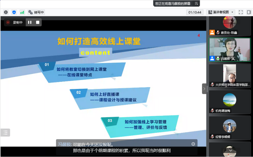 结合省线上教学督导及我校督导听课反馈的情况,针对我校部分教师线上教学能力还有待进一步提升的问题,9月22日下午,教务处邀请省级教学名师冯展极教授通过线上会议的形式举行线上教学能力提升培训。来自各教学单位、教务处、教学质量评估中心(发展规划处)等教学管理部门的300余名教师参加了培训,培训会由教务处副处长张国发主持。
