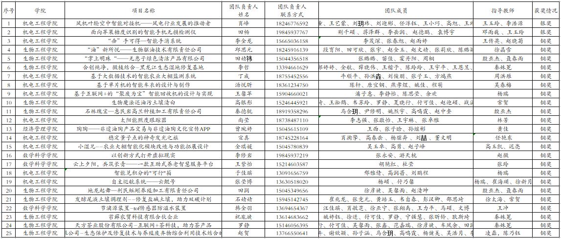 自第八届“互联网+”大学生创新创业大赛启动以来,校团委高度重视、精心组织,主动融入学校创新创业人才培养工作,牵头扎实做好集中备赛工作,组织参赛师生参与线上培训讲座20余场。联合学校各相关部门和学院协同推进,充分激发参赛师生的积极主动性,有效施策、精准发力,我校报名项目共计1376项、参赛学生数6818人次。机电工程学院王玉玲、李浩源老师指导的《风机叶轮空中智能对接机——风电行业发展的推动者》和邓雨巍、王玉玲老师指导的《面向苹果糖度识别的智能手机无损检测仪》等2个项目获银奖;生物工程学院徐太海、常贺老师指导的《发酵尾液土壤调理剂--修复盐碱土壤,助力双碳计划》、经济管理学院黄佳老师指导的《陶陶——非遗油陶产品交易与非遗油陶文化宣传APP》等23个项目获铜奖。