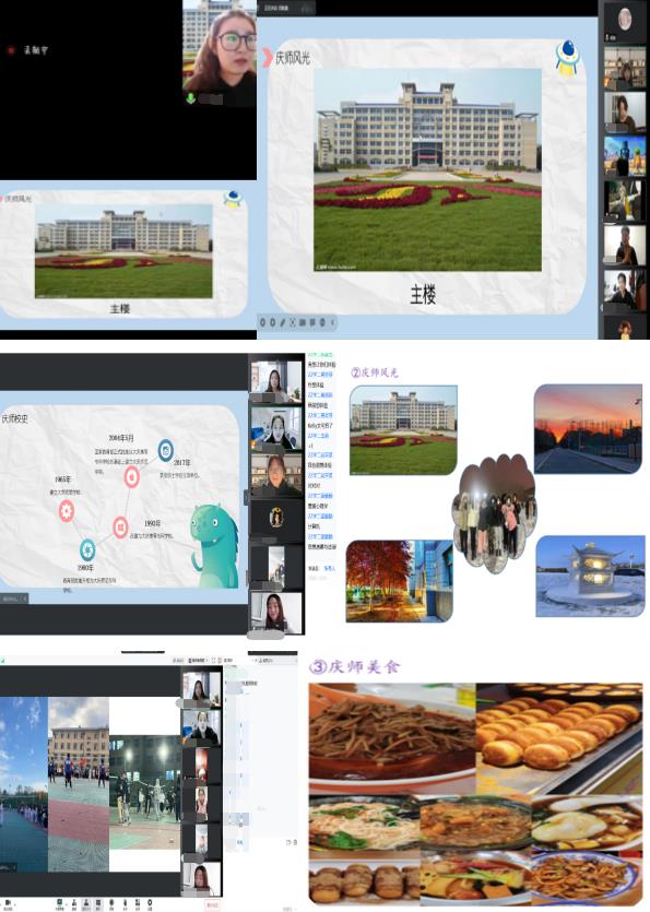 主持人向同学们介绍分享了庆师发展史及庆师美景美食。校园的春暖花开,夏日炎炎,秋风萧瑟,冬雪纷飞,仿佛让同学们置身其中。同学们期待疫情早日结束,大家可以来到庆师校园,亲身感受校园生活、赏美景、品美食。