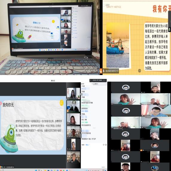 因为疫情,我们通过云端班会与大家见面,我感受到了大家对活动的积极热情,同学们之间的团结友善,大家一起做游戏,更是其乐融融,拉近我们之间的距离,希望能早日回到学校。
