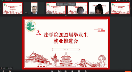 为推进当前疫情形势下毕业生就业工作,保障毕业生就业工作顺利开展,法学院于2022年11月4日召开2023届毕业生就业推进大会。本次会议由2023届毕业年级辅导员杨郁婷老师主持,2023届144名学生及学生家长参加会议,学院党总支书记王金波、学生工作办公室主任张彪老师参加会议。