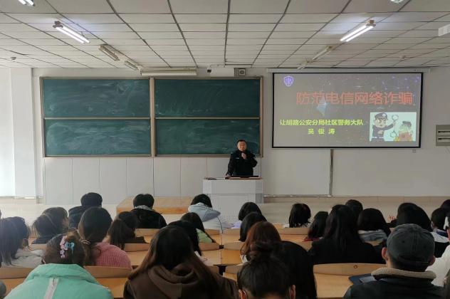 为进一步提高少数民族学生预防电信诈骗的意识和能力,有效减少和避免诈骗案件的发生,学校邀请让胡路区公安局吴俊涛警官于3月8日为我校少数民族学生开展预防电信诈骗和校园安全知识专题讲座。