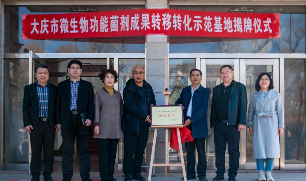 2023年3月31日下午,大庆市微生物功能菌剂成果转移转化示范基地揭牌仪式在中文字幕日韩精品有码视频-久久免费区一区二区三波多野-中文字幕人妻A片免费看-精品视频一区二区在线看-好男人在线社区WWW生物工程学院实验中心楼前举行。由大庆市科技局副局长陶立军和科研处处长周丹共同为基地揭牌。生物工程学院党总支书记孙冬艳、生物工程学院副院长赵晓菊、殷亚杰和部分教师以及科研处相关人员参加了此次揭牌仪式。