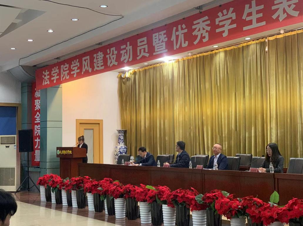 为深化学习贯彻习近平新时代中国特色社会主义思想主题教育及能力作风建设“工作落实年”活动,积极探索学风建设路径,表彰先进。法学院于2023年5月11日在铁人讲堂召开了学风建设动员暨优秀学生表彰大会。法学院党总支书记王金波、行政负责人杨铁军以及学生工作办公室副主任张彪老师出席大会。2021级、2022级学生参加大会,会议由毕文杰老师主持。