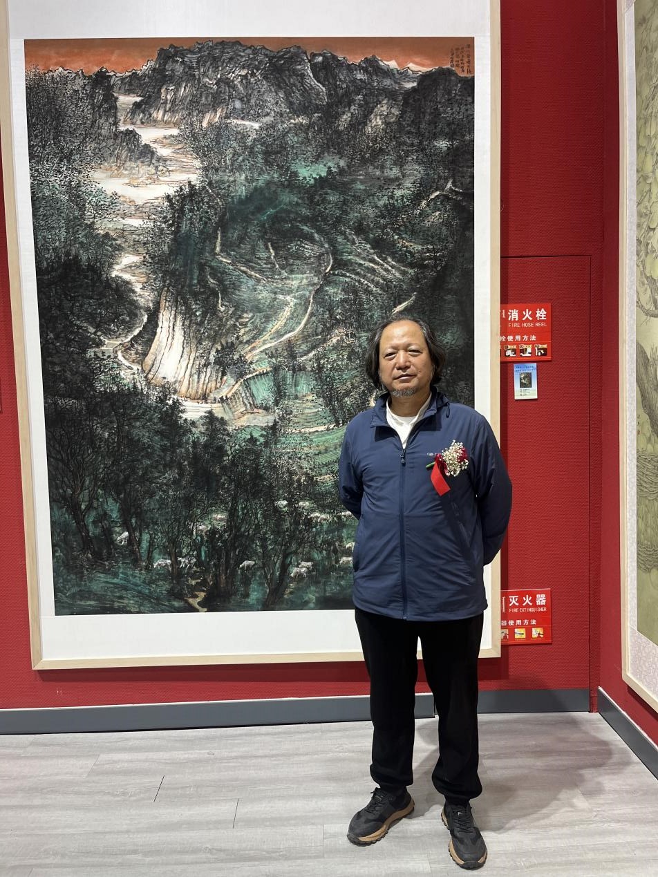 展览自2022年7月发布征稿启事,通过初评、复评,最终评出268幅作品,其中中国画作品164件,油画作品124件。张建国老师的作品《泾川盛夏午后》是他的梯田山水画代表作品之一。