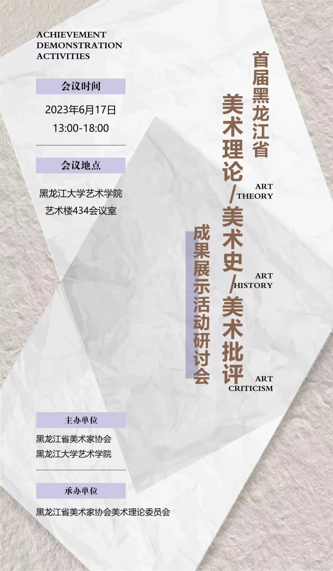 黑龙江省美术理论、美术史、美术批评成果展示活动集中呈现和研讨对于推动我省美术史论研究与绘画实践共同发展,优化我省美术研究领域的互动与交流,挖掘该领域的新生力量,推动我省美术史论研究者的工作进度以及拓宽研究深度具有重要意义。(美术与设计学院供稿)