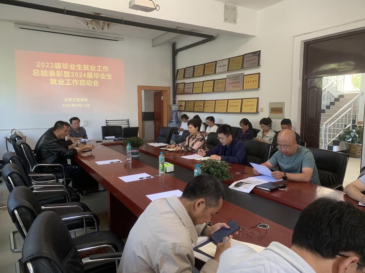 2023年9月13日下午,化学工程学院召开了2023届毕业生就业工作总结暨2024届毕业生就业工作推进会,会议由院长高清河主持,全体教职工参加了会议。会上徐宏书老师做了2023届毕业生就业工作总结并对2024届毕业生就业工作做了安排部署,表彰了就业先进系1个,就业先进个人:一等奖1人,二等奖4人,三等奖6人,优秀组织奖4人。