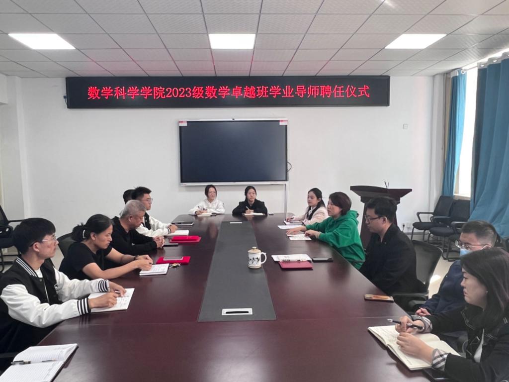 9月21日下午,数学科学学院2023级数学卓越班学业导师聘任仪式在学院会议室举行。数学科学学院领导班子全体成员,卓越班学业导师李唐海教授、郭爽教授,学院学生工作办公室、综合办公室人员参加聘任仪式。会议由院长高扬主持。