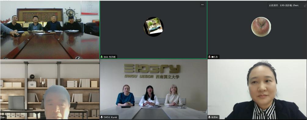 2024年1月30日我校与俄罗斯西南国立大学举行了中外合作办学项目线上校际交流会,我校对外合作与交流处王忠民处长、王刚科长、机电工程学院刘永皓院长和外国语学院周进辉老师与俄罗斯西南国立大学副校长Pakhomova Ekaterina Gennadievna、国际处处长Rudaya Ksenia Alekseevna和预科院主任 Brekhova Marina Yurievna就中外合作办学项目物联网工程专业相关工作进行了深入交流研讨,作为企业方的北京华晟及体系公司董事姜善永、项目执行负责人程显华、苗强一同参加了此次会议。