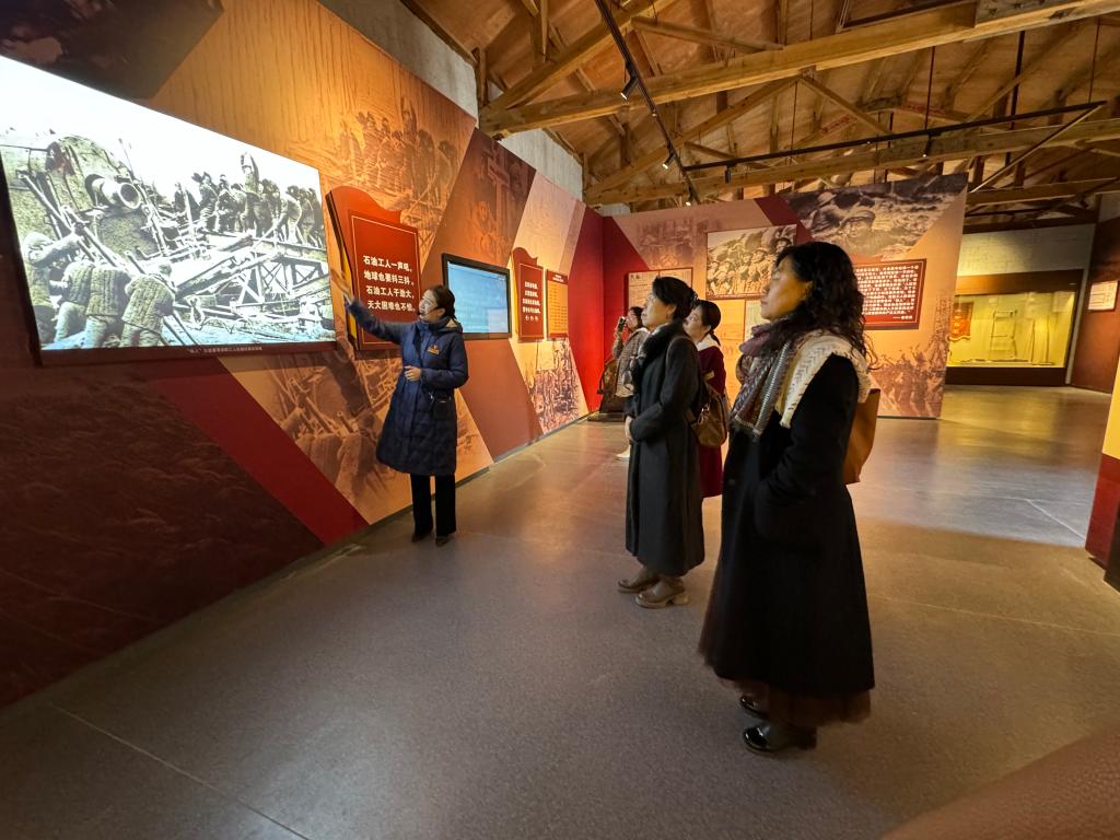 下午,调研小组前往位于红岗区解放南村的全国重点文物保护单位--改造后的“铁人一口井”进行考察调研。在讲解员的带领下一行人详细考察了“卸车台”“值班房”“泥浆池”“地窨子”等遗址遗迹,参观了大庆石油会战“六个传家宝”展厅,进入地窨子感受了当年石油人的艰难岁月。