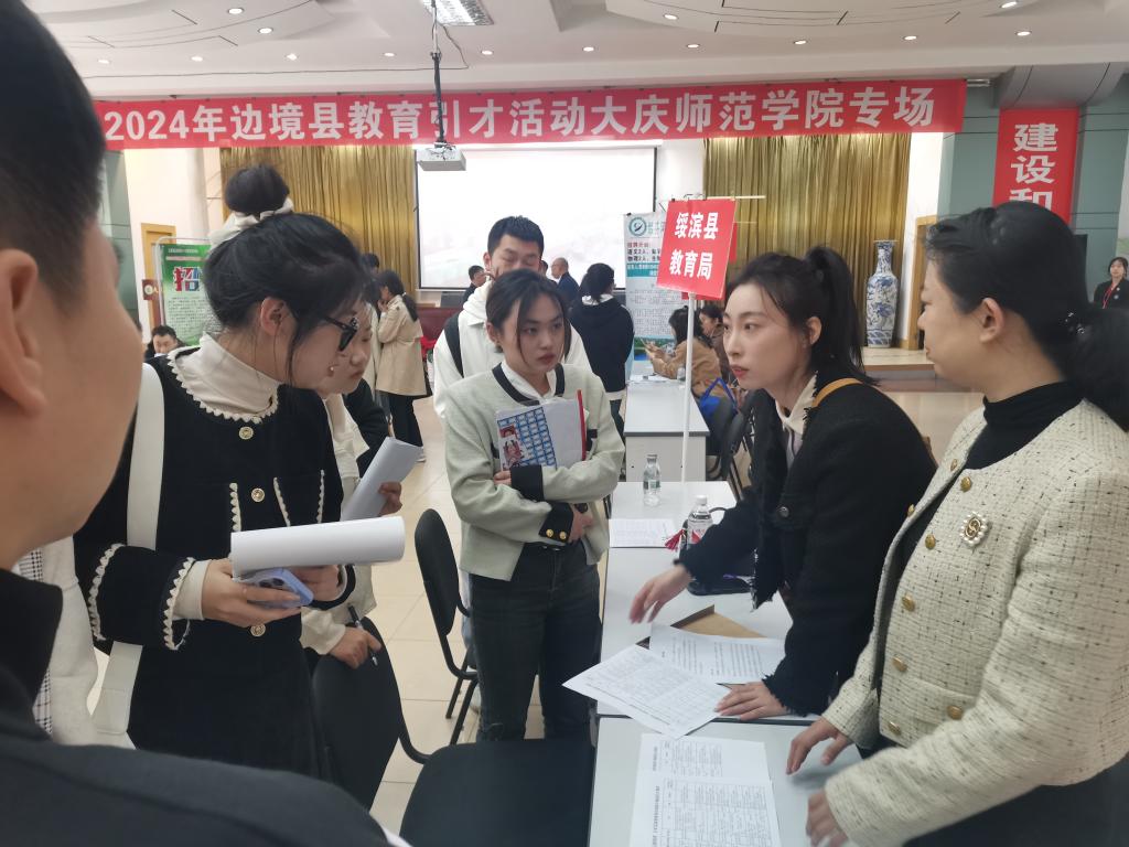 为全面提升边境县教育质量,办好边境地区人民满意的教育,4月12日上午,由黑龙江省教育厅主办,我校承办的“情系黑土地·就业在龙江”2024年“边境县教育引才活动”第四场招聘会在铁人讲堂举行。