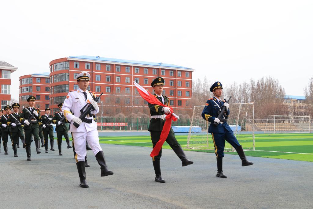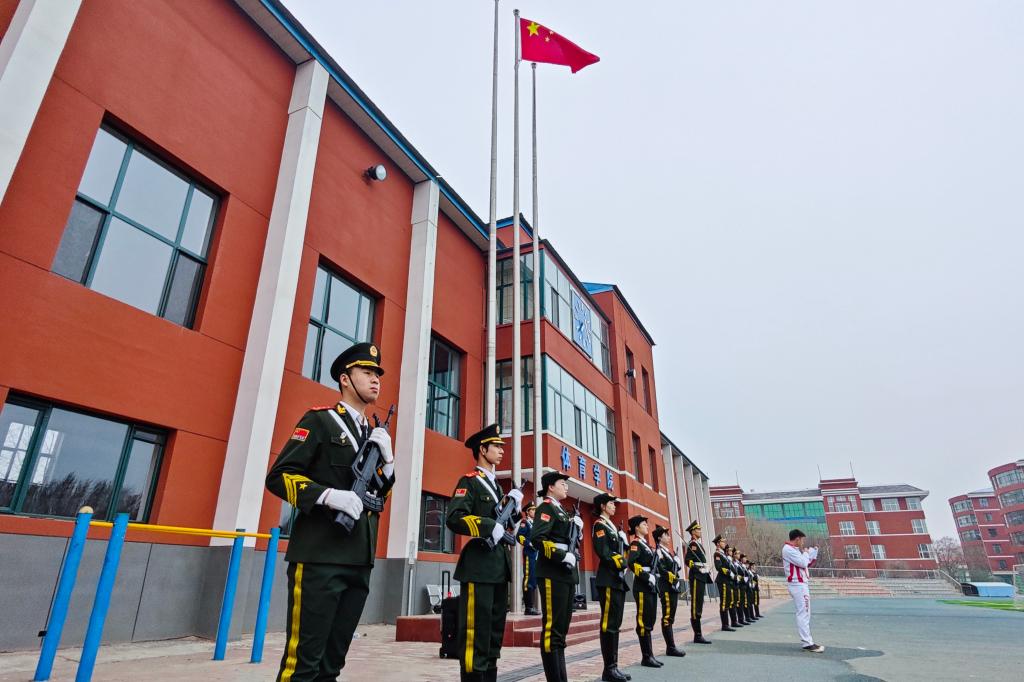早上7时许,升旗仪式正式开始,国旗护卫队迈着整齐划一的步伐,昂首阔步护送国旗入场。随着雄壮激昂的国歌旋律响起,全体师生满怀敬意,向冉冉升起的国旗行注目礼。