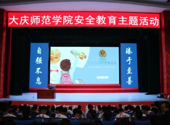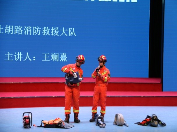 邀请了让胡路区消防救援大队王斓熹参谋开展以“消防知识进校园 安全相伴你我行”为题的专题讲座。讲座主要围绕防灾减灾知识、提升防灾避险能力的措施和方法等内容进行讲解,消防队员现场演示了消防器材的使用,与师生进行互动,通过讲座进一步强化师生的应急防范意识,提高抗击应对突发事件的应对能力。