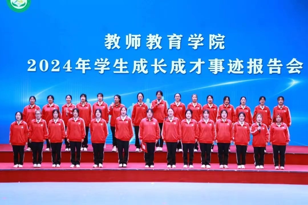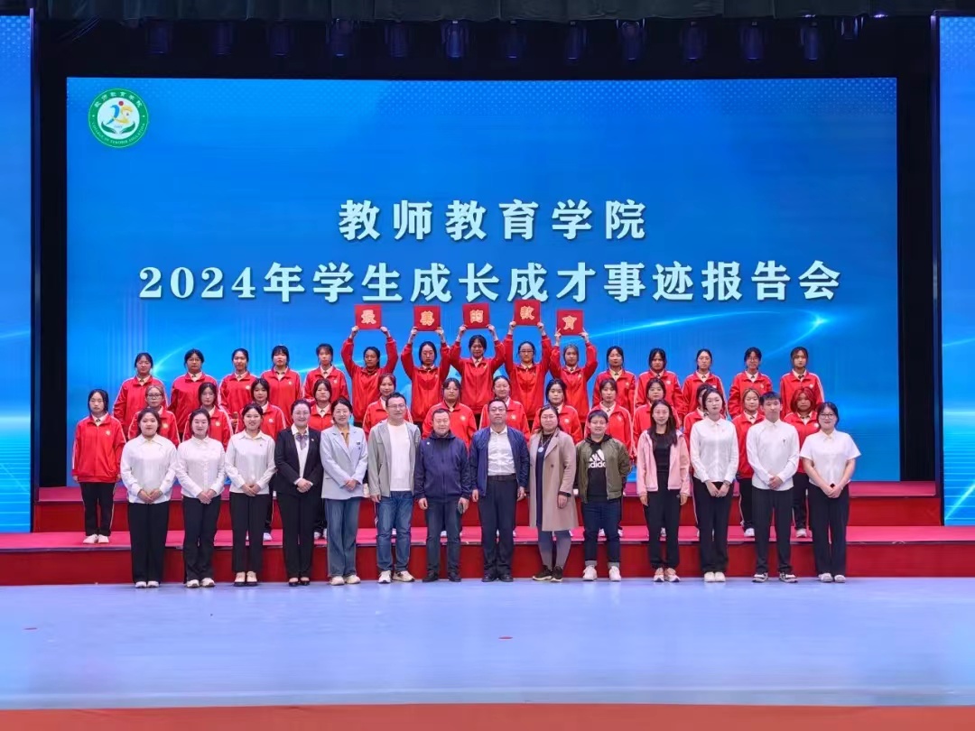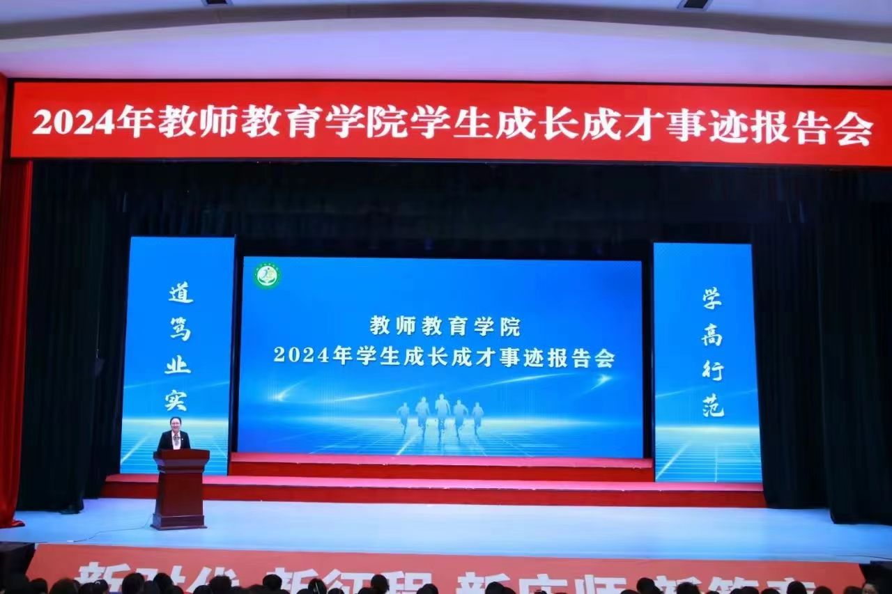 为激励全体学生树立明确的学习目标,更好地规划未来职业生涯,以优秀校友为榜样,增强未来发展信心与决心,教师教育学院于5月30日在大学生活动中心召开了2024年成长成才事迹报告会。本次报告会由2024届毕业生辅导员熊巍老师主持,学院领导班子成员、系部主任、学生辅导员、2021级、2022级、2023级全体同学及2020级学生代表参加会议。