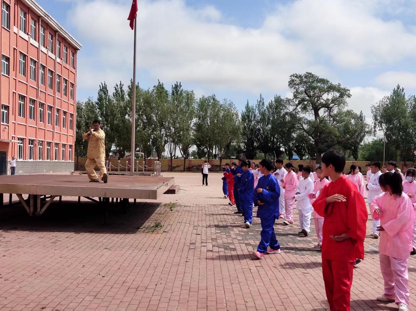 张国发一行观看了任民镇中心校太极拳社团的精彩表演。我校体育学院张大伟老师现场进行了指导教学,对社团成员的动作要领和技巧进行了细致的讲解和示范。太极拳社团的同学们展现出了良好的精神风貌和扎实的技艺水平,赢得了在场师生的阵阵掌声。