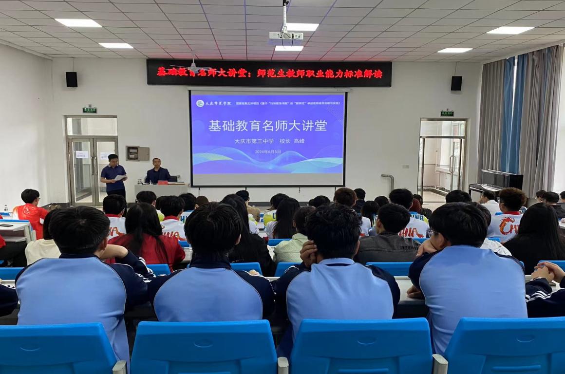 6月5日,教务处在教师教育学院一楼阶梯教室开展了“基础教育名师大讲堂”报告会,会议邀请了我校杰出校友、大庆市第三中学校长高峰为师范生和教师教育骨干教师做题为“师范生教师职业能力标准解读”主题报告。报告会由教务处长张国发主持。