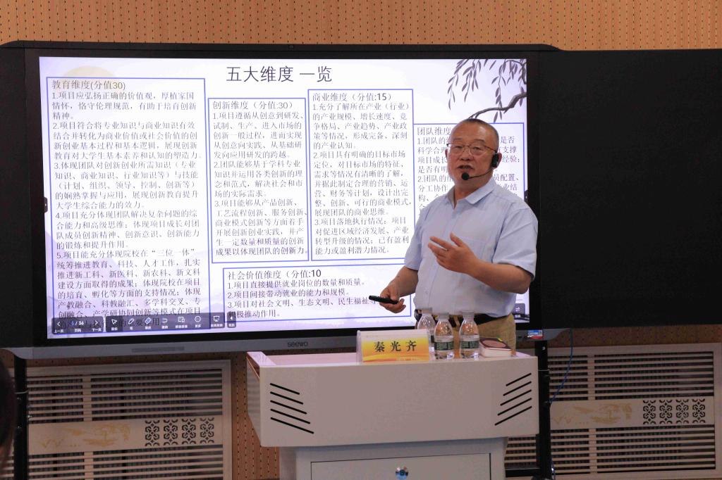 秦光齐老师从创业项目的概念、本质、选择原则和解决方案等方面,有针对性地阐述了中国国际大学生创新大赛创业项目的核心要点,并提出专业性的指导建议,参会人员深刻意识到选择好创业项目对中国国际大学生创新大赛的重要性。