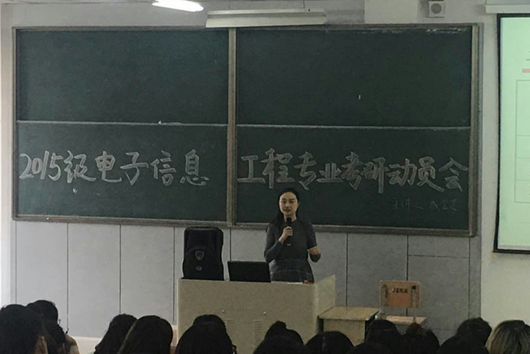 最后,成宝芝老师对此次考研动员会进行了总结,对在座的15级学生提出了期望和要求。第一,大家要认清目前的就业形势,考研作为大学毕业阶段的选择之一,特别是对于电子信息工程专业来说,高学历就意味着有更大的概率找到理想和满意的工作;第二、考研是一个长时间的学习过程,希望有考研志向的学生在备考的过程中始终坚持,只要坚持住就一定会取得理想的结果;第三、学院会为大家考研提供力所能及的支持和帮助,也希望同学们珍惜在大学的剩余时间,利用好每一分钟,为自己的未来努力拼搏。