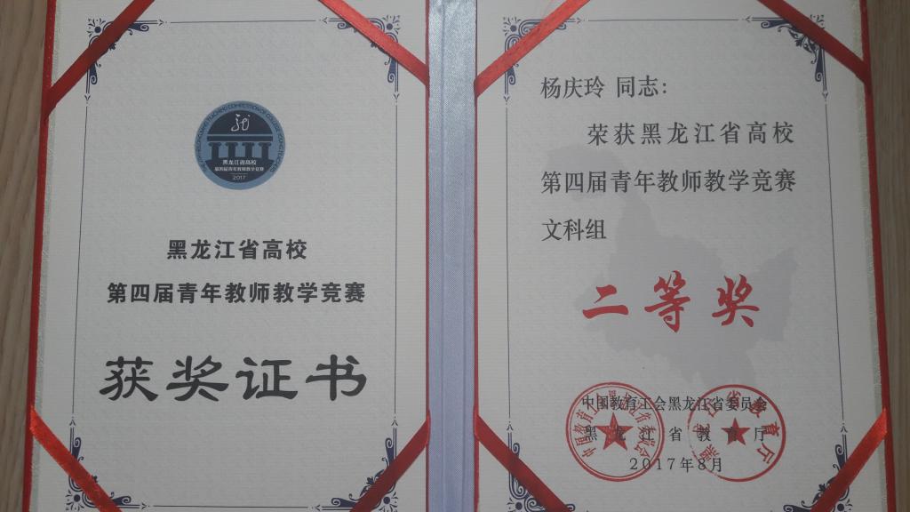 2017年8月3日,由省教育工会、省教育厅联合举办的黑龙江省高校第四届青年教师教学竞赛在哈尔滨工业大学圆满落幕。经过激烈角逐,我院杨庆玲老师荣获本次竞赛文科组二等奖,这是我校自参赛以来所获最优成绩。