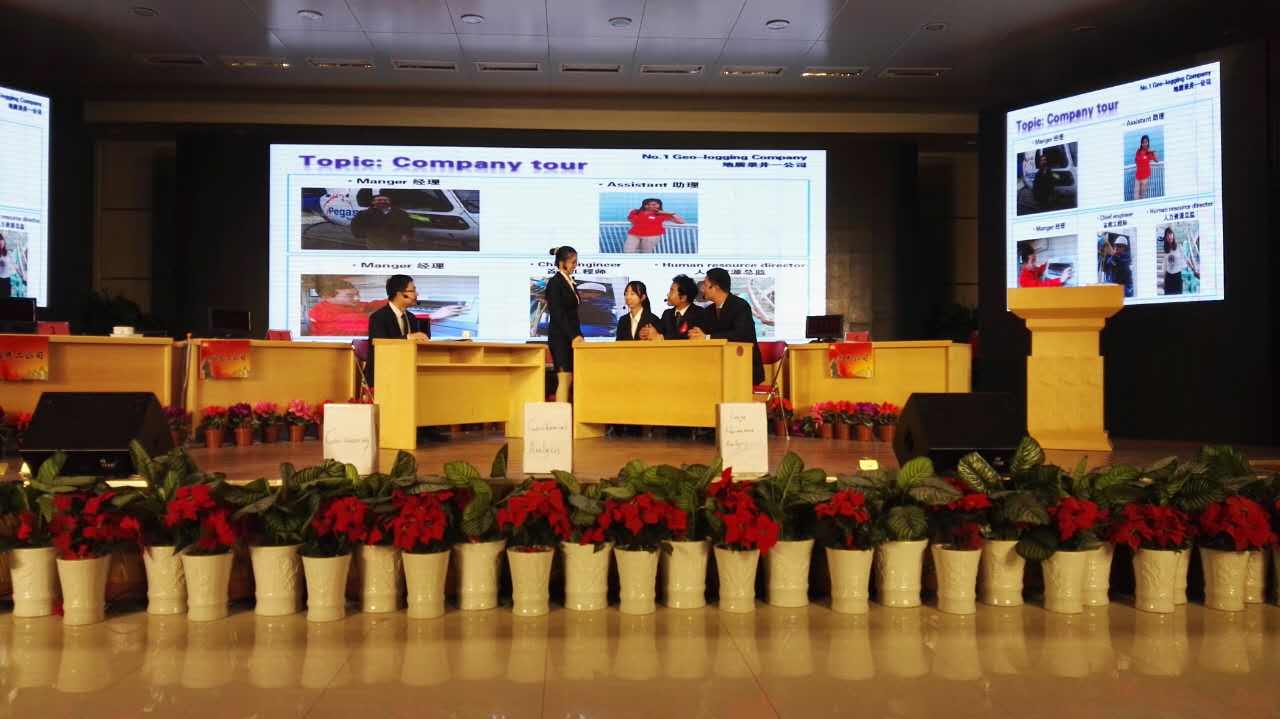 比赛历时两天,分复赛和决赛两个环节。在周六进行的大赛复赛中,16位个人参赛选手和10个参赛团队经过激烈竞争,共有8位个人选手和5个团队共计50名团队选手取得了周日总决赛的参赛资格。总决赛赛事环节紧密、精彩频出,完美展现了钻探员工的英语风采。