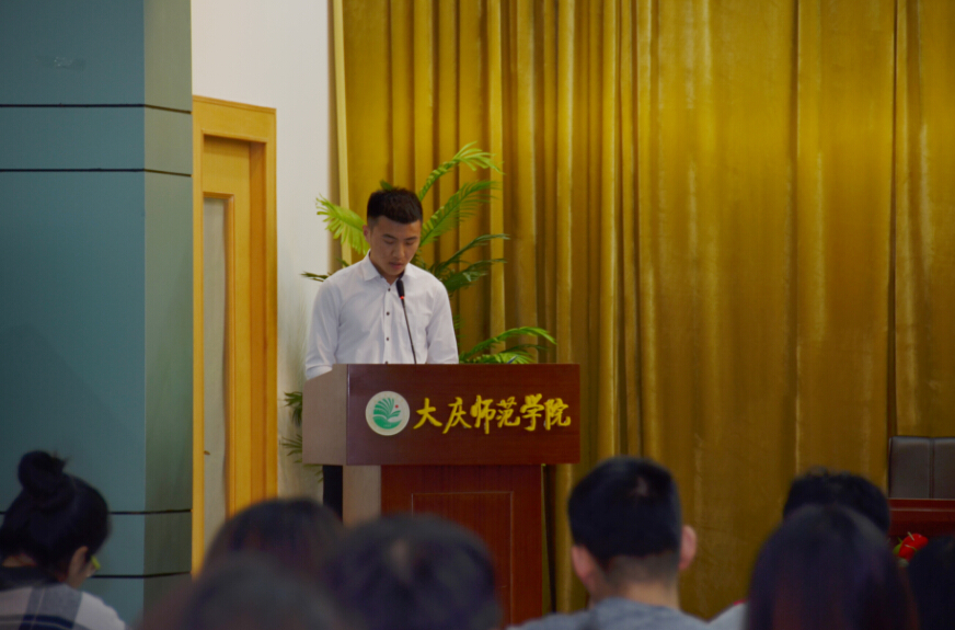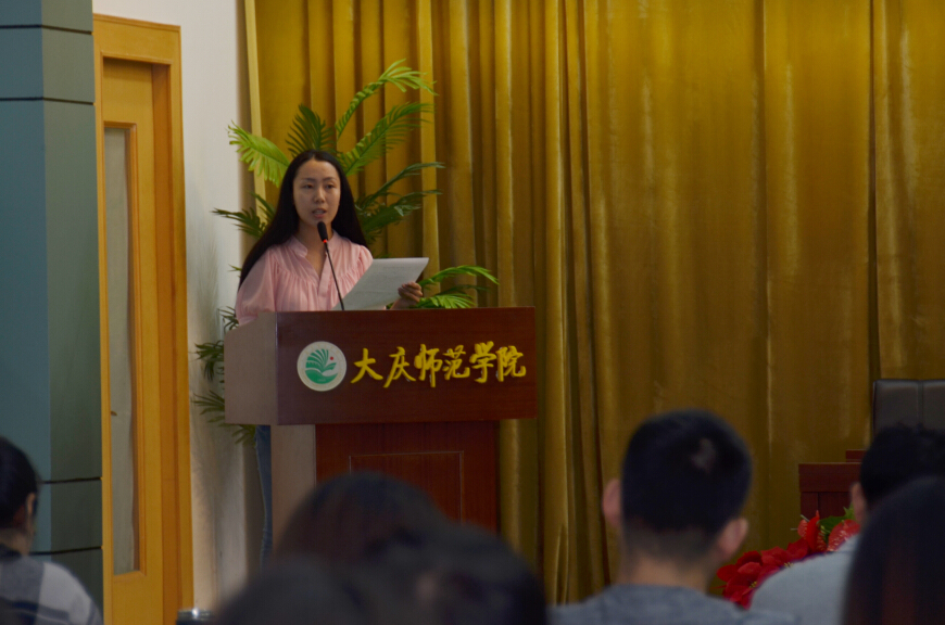 学院团总支书记、负责毕业生工作的辅导员汪丽媛主持典礼大会,她祝福同学们青春生命之舟在新的岁月港湾里启航,直挂云帆,乘风破浪。时刻用大庆精神、铁人精神激励自己不断追求卓越,走向辉煌!