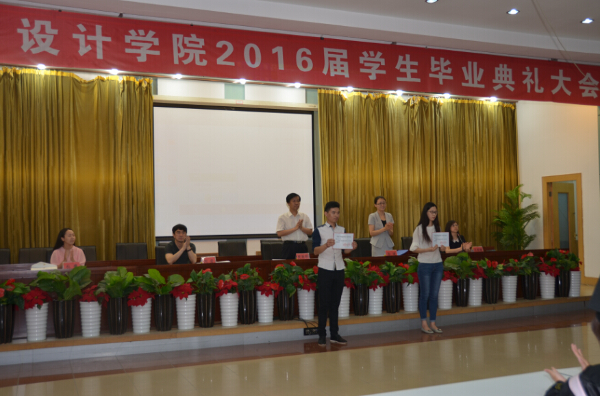 毕业典礼大会在雄壮的国歌声中开始。设计系主任刘岩宣读了毕业生名单和获得学士学位学生名单,宣读了获得省级三好学生名单。