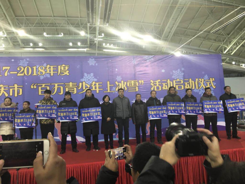 在本次启动仪式上,对2016--2017年度受表彰的先进单位进行了表彰,对我市2018年“百万青少年上冰雪”9项活动进行了部署。大庆市区县的大中小学的代表和2016--2017年度受表彰的先进单位参加了此次活动,我校荣获大庆市浇筑冰场先进单位,得到了2万元奖金和60付速滑冰刀的奖励。