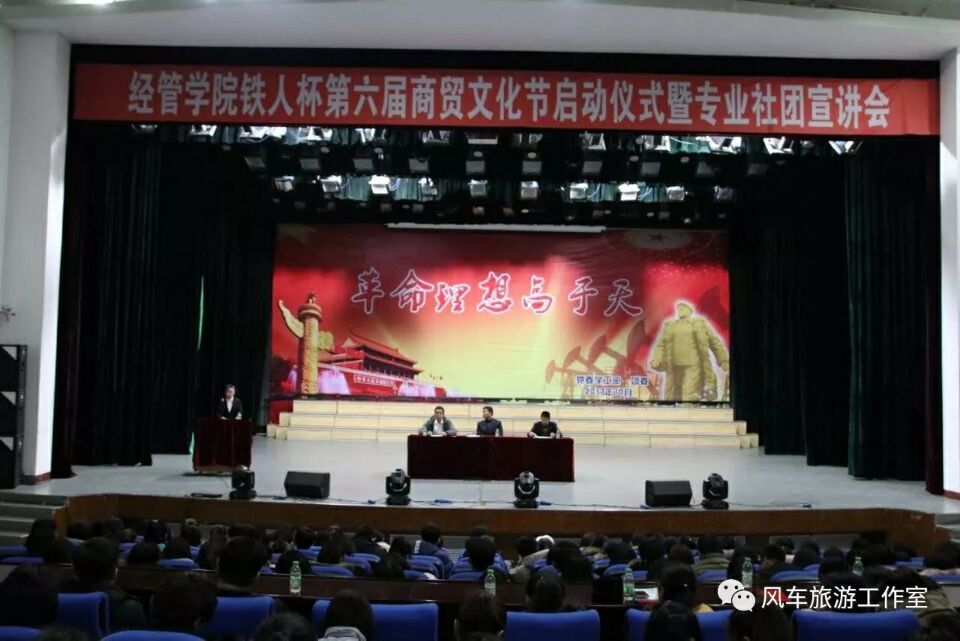2017年11月23日,经管学院铁人杯第六届商贸文化节启动仪式暨专业社团宣讲会在大学生活动中心正式开幕。大会由学生党支部书记陈超主持,院长张平,党总支部书记孔若东以及特邀企业代表出席大会
