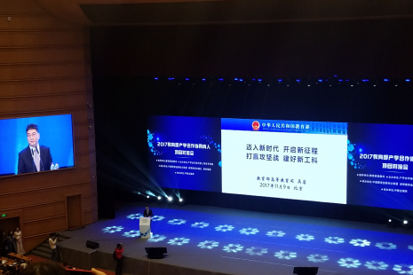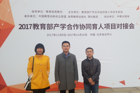 2017年11月9日至10日,由教育部高教司作为指导单位,产学合作协同育人项目专家组主办,中国教育创新校企联盟、高等教育出版社、慧科集团承办的“2017教育部产学合作协同育人项目对接会”在北京会议中心盛大召开。本次大会由来自教育部高教司,腾讯、阿里云、德州仪器、慧科集团、因特尔等一百多家著名企业以及来自全国各地三百多所高校教师代表参会,旨在深入推进产学合作协同育人,推动高校人才培养与产业发展紧密结合。机电工程学院副院长长刘永皓一行3人参加会议。