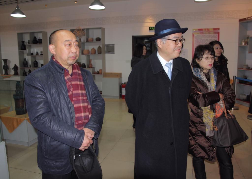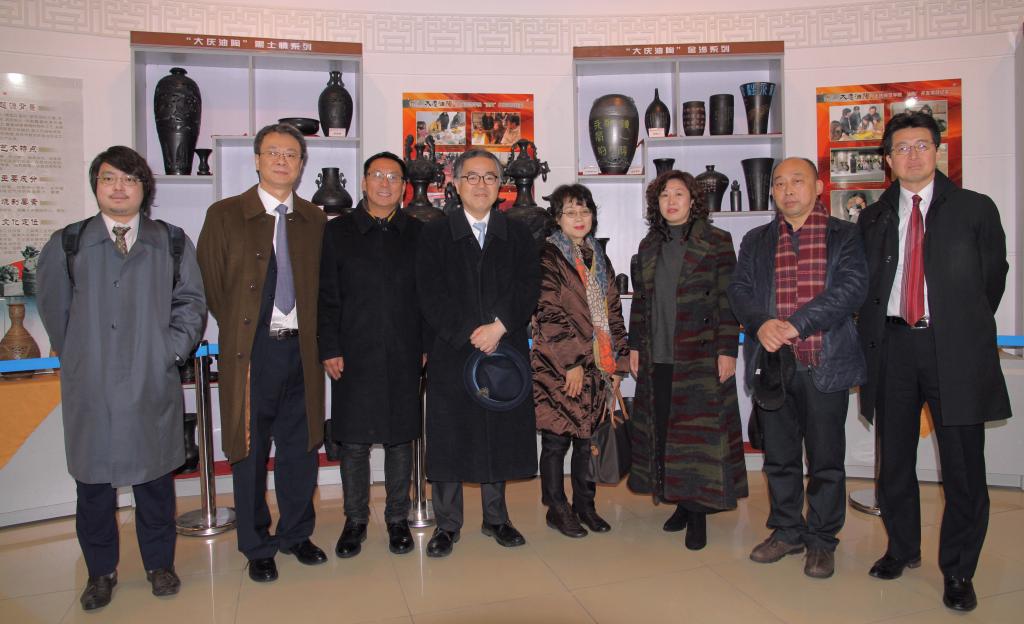 2017年11月10日上午,在日本驻沈阳总领事来大庆进行友好访问期间,市外侨办安排总领事一行8人,在市侨办副主任蔡雪峰及美术与设计学院负责人陪同下,来我校大庆油陶研究所参观。在参观研究所实验车间和大庆油陶展厅的过程中,总领事仔细询问大庆油陶的材料构成、作品内涵、作品类别等。总领事等还参观了图书馆前厅陈列的石油绘画主题作品。