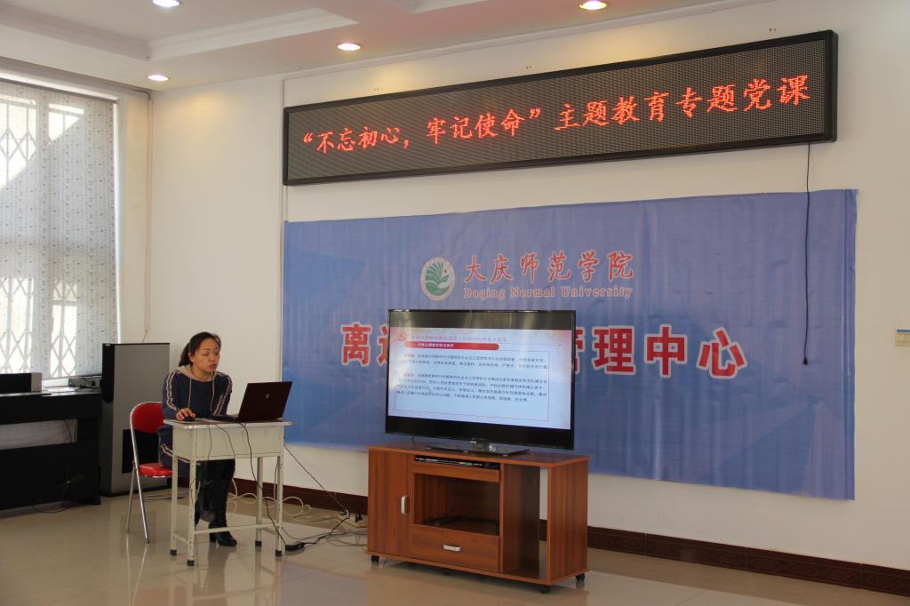 根据“不忘初心、牢记使命”主题教育工作安排,2019年11月4日下午,离退休职工管理中心党总支书记夏军为离退休职工管理中心全体在职党员及部分退休党员上“不忘初心,牢记使命”主题教育专题党课。