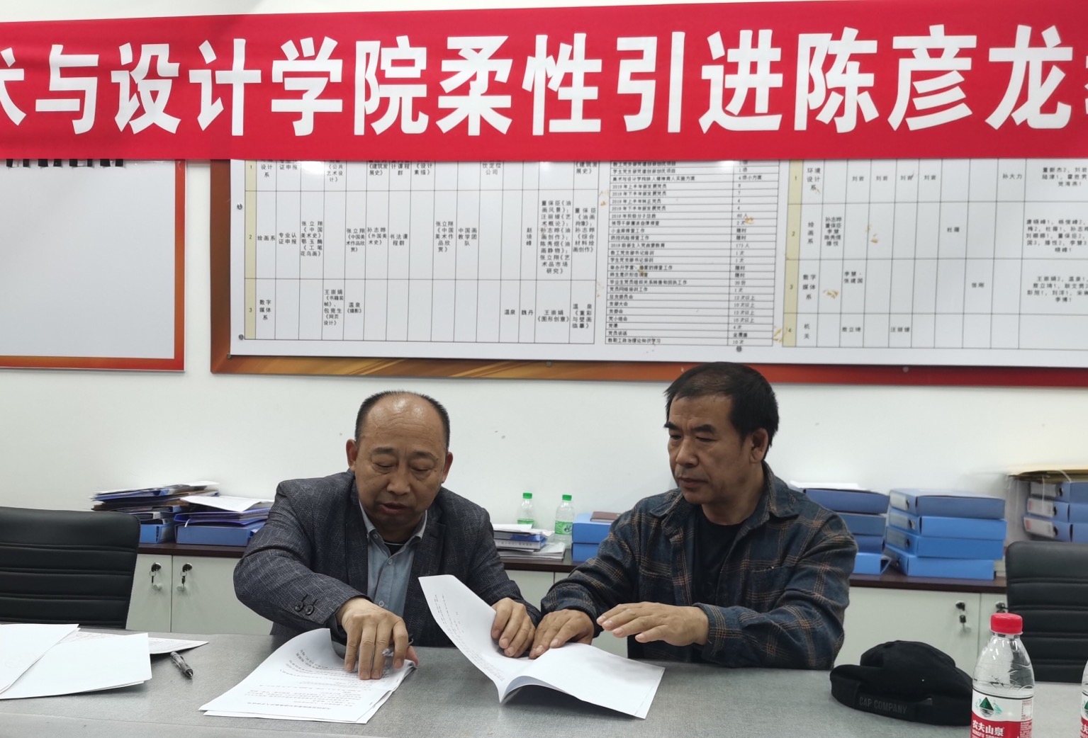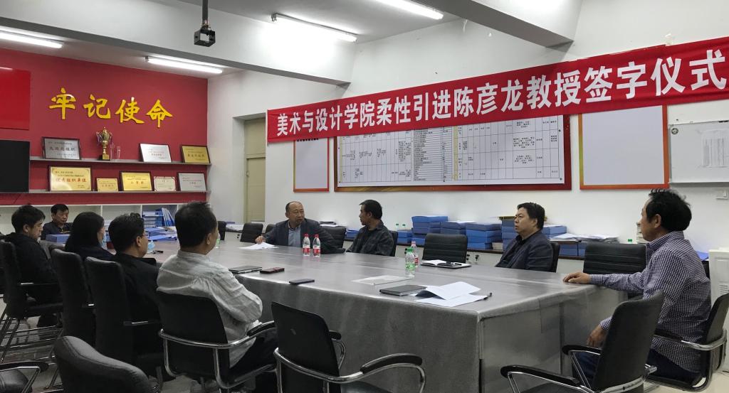 美术与设计学院学术委员会成员和教师代表参加了签约仪式,各委员对陈彦龙教授能够受聘我校特聘教授给予很高的评价和厚望,希望在陈教授的带动下,对美术与设计学院的学科建设、骨干教师培养等多方面起积极的促进作用,对美术与设计学院学科建设和科研创作能力得到整体提升,在高层次项目申报和美术作品创作再创新高,希望在陈教授的引领下美术与设计学院学科建设能够进一步凝炼地方特色,展现出新的景象。