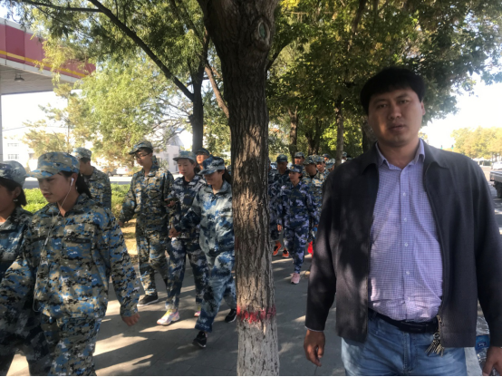 2018年9月20日下午13点,体育学院2018级全体新生在主楼门口集合准备进行总长5公里的拉练活动,本次带领大一新生拉练的老师是辅导员陈鑫,学生干部是学生会主席玄金宇、团总支副书记李琦和三个班级的班导生。