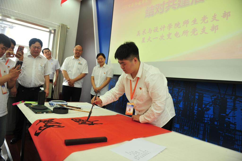 随后,举行了党建联合共建活动,先后开展了星火接力站成员入站仪式;双方签署共建协议;为联合共建党支部揭牌;星火一次变电所党支部为学院赠送学习书籍;星火接力站新入站成员代表发言;师生党员重温入党誓词;学院师生现场创作书画作品赠送星火一次变电所等活动,活动的顺利进行,让师生党员感受到了一次精心策划、创新形式、别开生面的党建活动,尤其让首次参观的学生感受到了党组织的温暖,体验到了在党组织的大家庭里进步和成长的快乐。